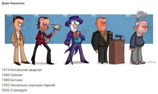 LeRei голливуд · 8 л · edited Эволюция голливудских актеров от их первых до последних ролей в иллюстрациях. (33) #голливуд#актеры#иллюстрация#эволюция#кино#знаменитости