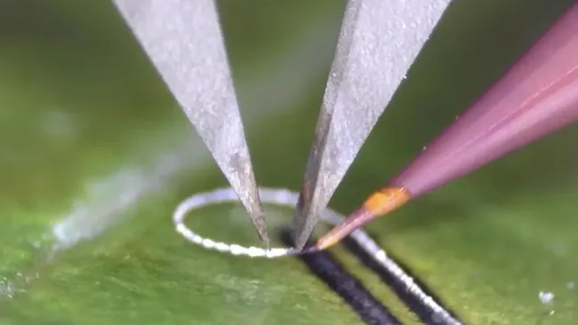 Команда Университета Райс напечатала проводящие структуры на листе, пластике, бумаге и даже на бедренной кости быка. На кость установили беспроводной датчик деформации, фиксирующий малейшие механические сдвиги. Оболочка из силикона сохраняла работоспособность более 300 секунд под водой, тогда как незащищённая схема разрушалась за 2,5 секунды.