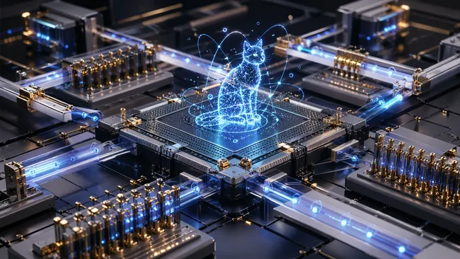 Ключевая идея — использование «cat-состояний» (суперпозиции типа кошки Шрёдингера). Такие состояния устойчивы к ошибкам переключения битов. Компания Amazon также изучает подобные кубиты. В системе IonQ «фабрика кошек» создаёт эти состояния, которые «гуляют» по устройству, формируя запутанность согласно алгоритму. Устойчивость гарантирует отказоустойчивые платформы, способные отработать миллионы вентилей в сутки.